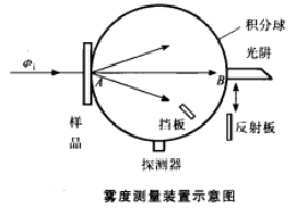 霧度測量中需要注意保證測量的幾何條件、測量系統的線性、光源色溫、雜散光、吸收直透射的光阱的吸收比等。